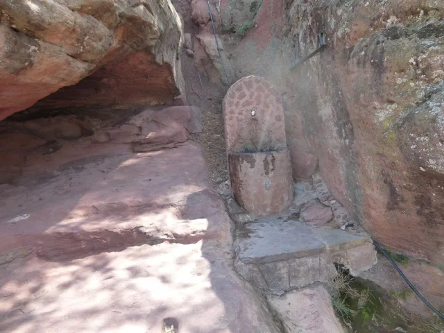 | Siguiendo un pasadizo se sube por unos escalones tallados en la misma roca a una pequeña capilla rectangular, Sant Ramon |